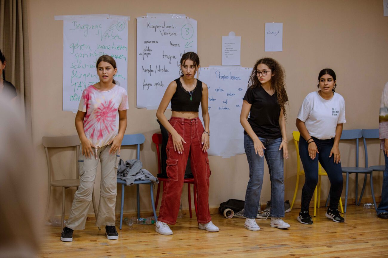 Ziel des Projektes war eine ganzheitliche Annäherung an Grammatik- und Wortschatz-Arbeit über alle Sinne und das gegenseitige Kennenlernen. Wir wussten schon immer, dass die Tanzsprache eine universelle Sprache zum Überwinden von Wortbarrieren und Hemmschwellen ist. Aber auch diesmal wieder hat sich herausgestellt, dass – obwohl Tanz gemeinhin als nonverbale Kunstform gilt – tänzerische Methoden im Sprachunterricht zu einer gegenseitigen Bestärkung und somit einer Intensivierung der Lern- und Lehrprozesse führen.